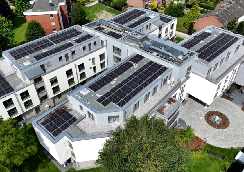 Vier Gebäude mit Wohnungen, Einzelhandelsflächen, Gastronomie, Arzt- und Klinikeinrichtungen, Sozialstation, begrünter Innenhof