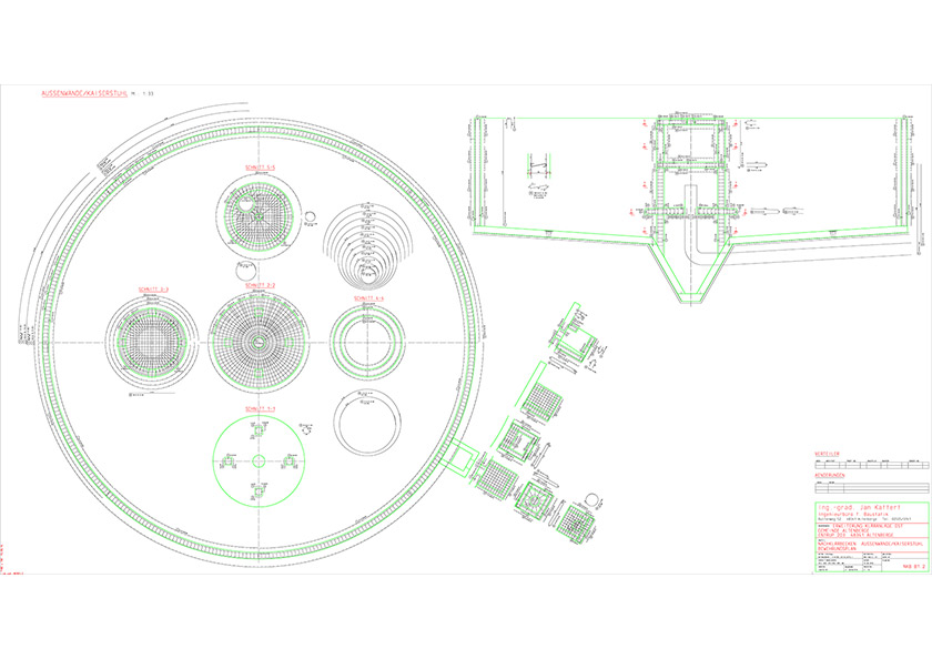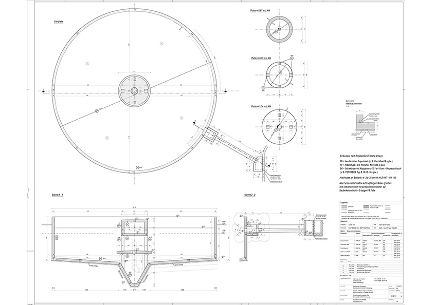 Nachklärbecken, Vorklärbecken, Betriebsgebäude, Gründung für Schlammsilo und Gasfackel